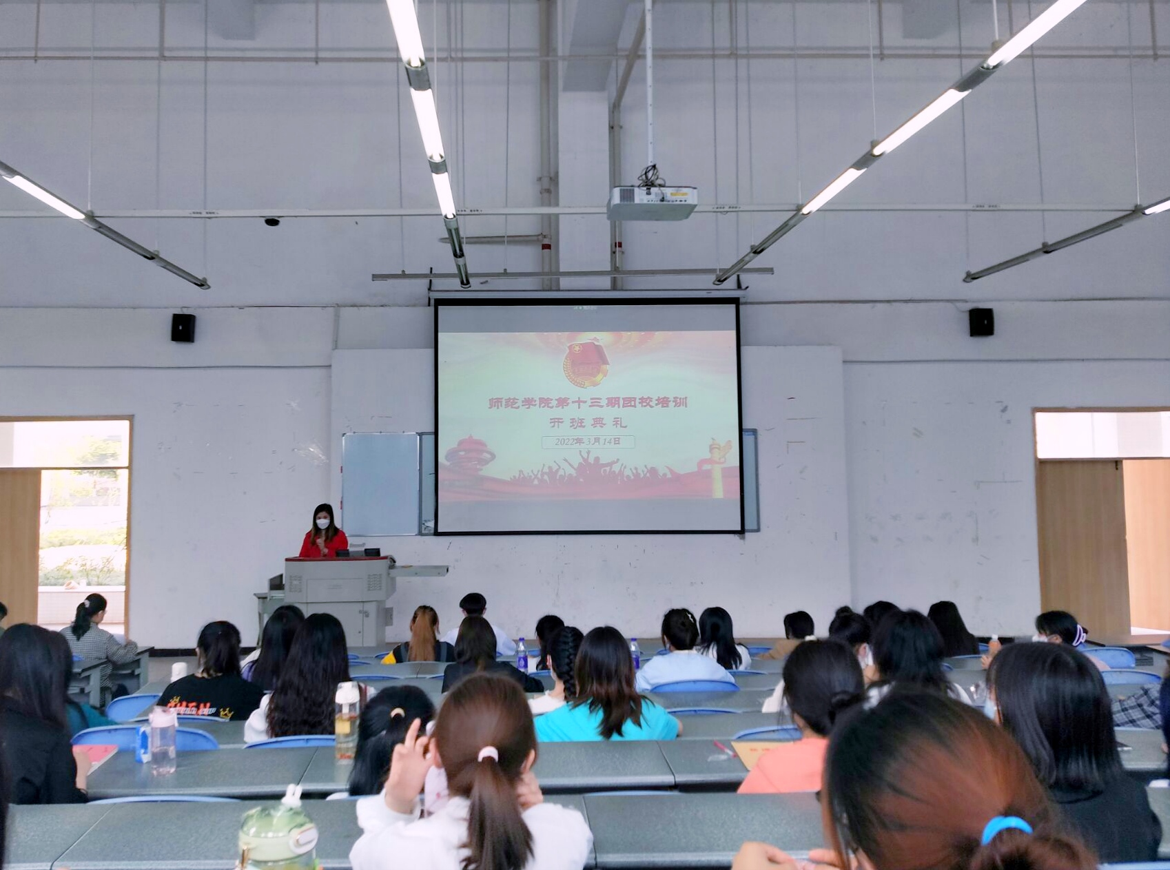 今年是中国共青团建团100周年,为激励和引导广大团员青年增强“四个意识”、坚定“四个自信”,坚决做到“两个维护”,以实际行动迎接党的二十大胜利召开,在学院团委和bwin必赢党总支的领导下,bwin必赢团总支在青年路校区举行“喜迎二十大、永远跟党走、奋进新征程”第十三期团校开班典礼。bwin必赢党总支书记冯良亮、团总支书记蔡小龙及此次团校培训的100名学员代表参加活动,130学员在线观看开班典礼。开班典礼在庄重的团歌声中开始。
